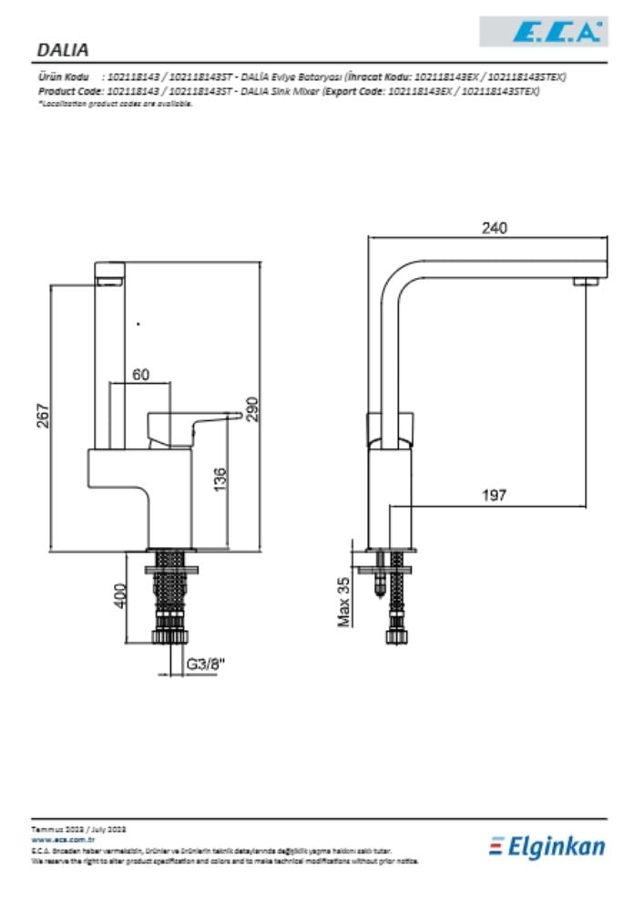 ECA Dalia eviye bataryası, mutfağınıza şıklık ve lüks kazandırmak için ideal bir seçenektir. Bulaşık yıkarken sağladığı kolaylık ile günlük hayatınızı pratikleştirir. Ayrıca paslanmaya karşı dayanıklı krom kaplaması sayesinde uzun ömürlüdür ve 20 yıl garanti kapsamındadır.
