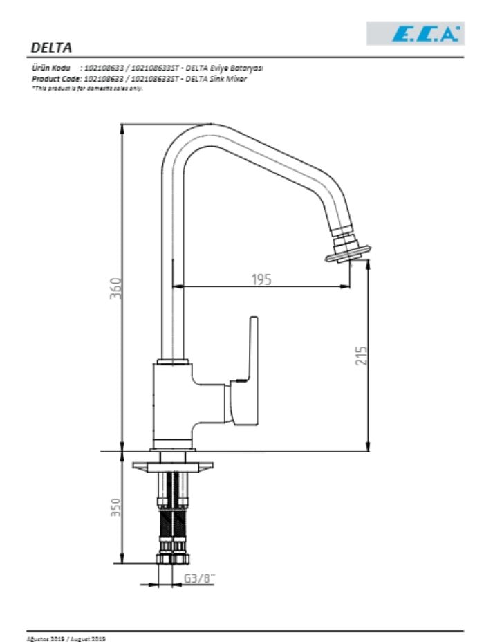 Bu ECA Delta Perlatörlü Eviye Bataryası, akış yönü değiştirilebilir özelliği sayesinde kullanım kolaylığı sağlar. Ayrıca el yakmayan mafsallı perlatör grubu ile suyun sıcaklığını kontrol etmek çok daha güvenli hale gelir. 20 yıllık garanti süresiyle uzun ömürlü bir üründür ve kendi çevresinde dönme özelliğiyle de kullanım esnekliği sunar.