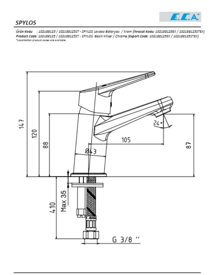 · ECA Spylos Lavabo Bataryası, banyo ve tuvalet lavaboları için şıklığı ve lüksü bir arada sunar. Krom kaplamalı tasarımı ile modern bir görünüm sağlarken, 20 yıl garantisiyle uzun ömürlü kullanım vaat eder. Aradığınız kalite ve estetiği bir arada bulmak için ideal bir seçimdir.