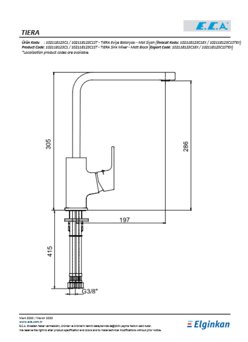 · Çıkış ucu yüksekliği 286 mm’dir