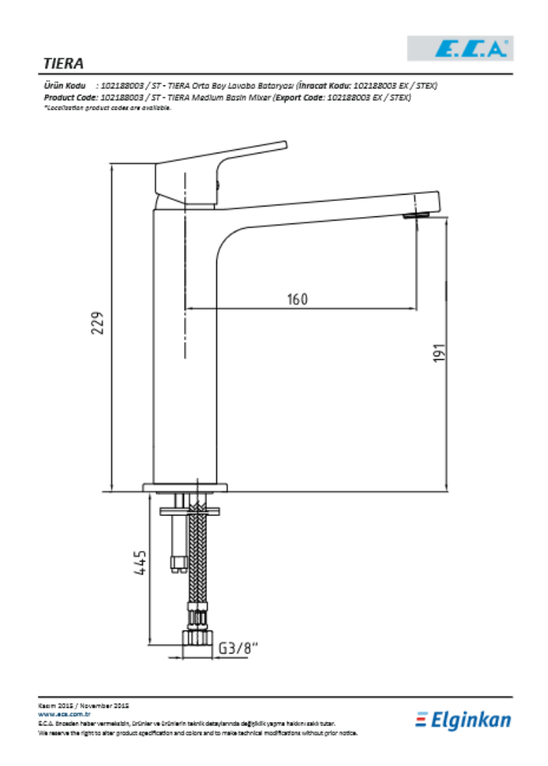 ECA TİERA ORTA BOY LAVABO BATARYASI 102188003